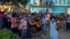Habaneros hacen cola para comprar alimentos, en medio de medidas restrictivas por el alza de casos de COVID-19. (Yamil LAGE / AFP)